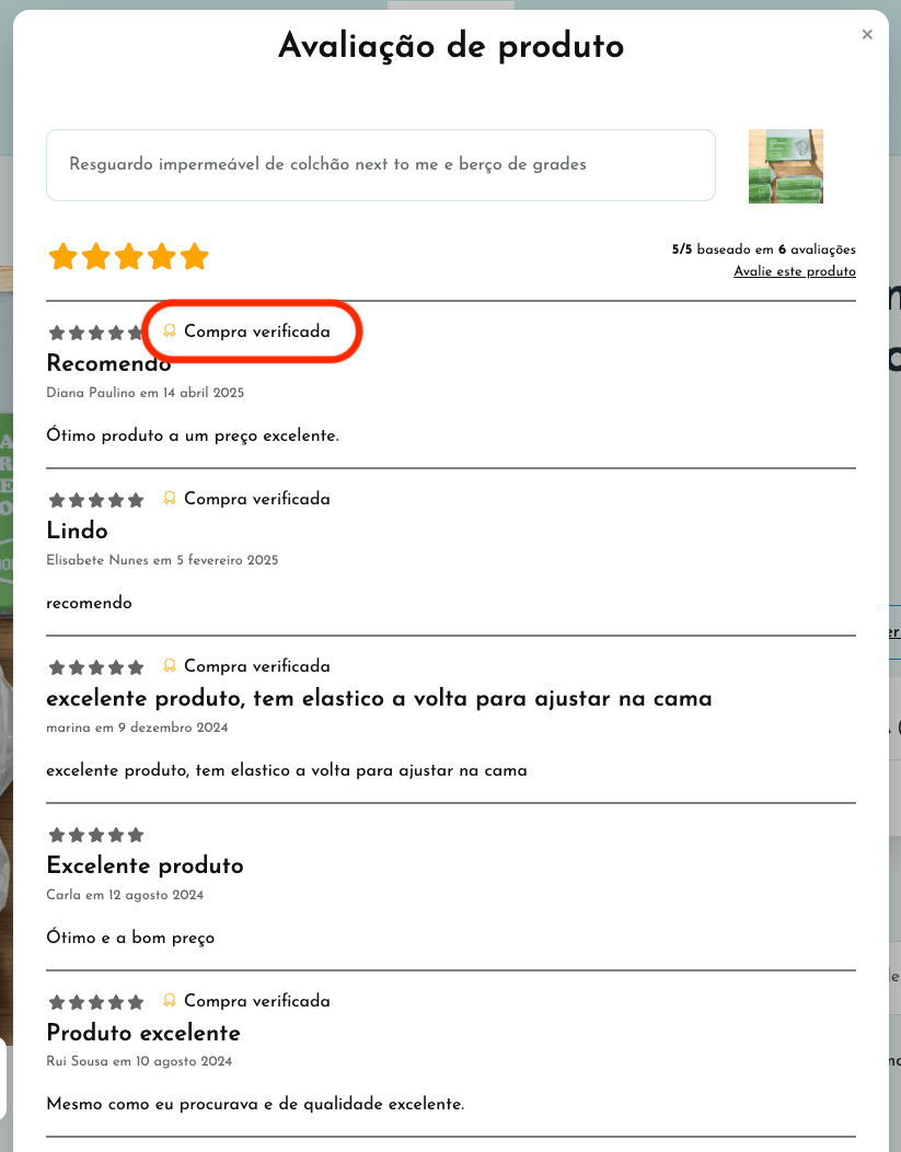 Por outro lado, uma avaliação que não apresente a indicação "Compra verificada", significa que a mesma foi feita sem que o produto tenha sido adquirido na loja.