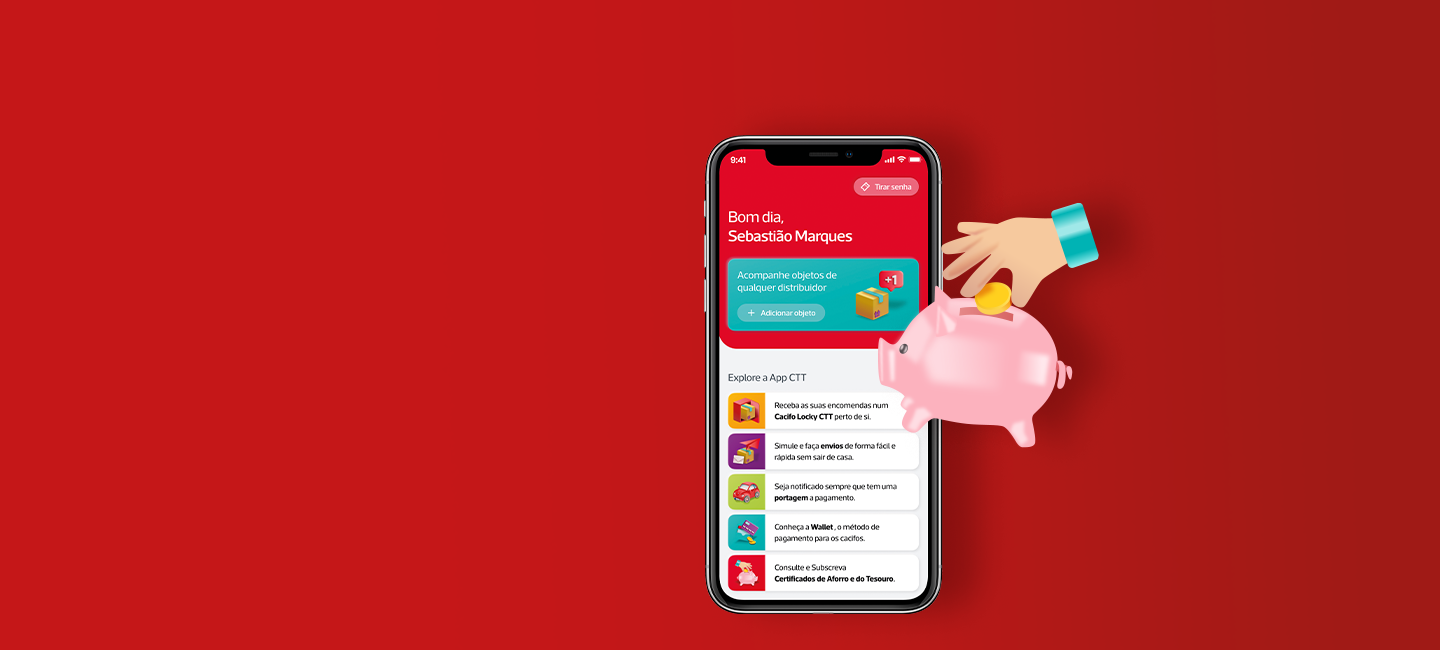 Se tem uma conta aforro, consulte, simule e subscreva Certificados de Aforro ou do Tesouro a partir do seu telemóvel, com a App CTT.